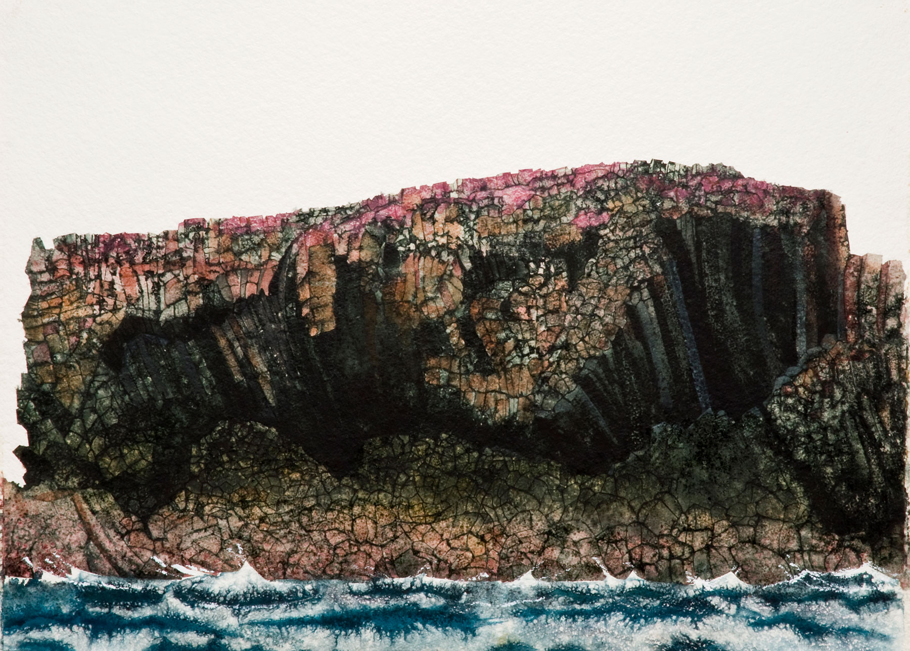 From the Sound of Harris I can see Roineabhal a mountain over 1,500 million years old. The rock is made up of anorthosite studded with garnets, a rock found on the moon. As a teenager in the 70’s the moon landing was the most remarkable event watched by us on the TV. Everyone became familiar with the Sea of Tranquillity, the other ‘Maria’ perhaps not to well-remembered. The Sea of Crises is the title of these works as a sea that is full of remarkable rocks weathered by the sea, amazing geology and exciting tides.